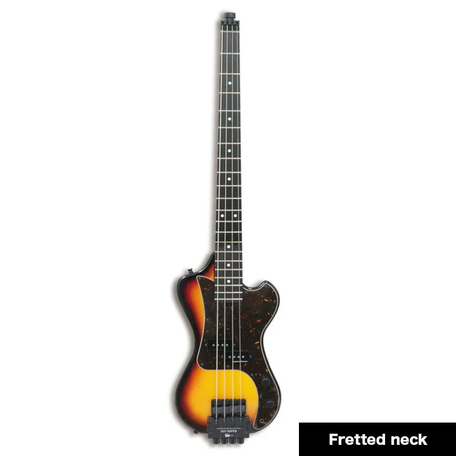 ヘッドレススタイルは見た目にインパクトを与え、ネックが外れるボディは持ち運びにも便利です。